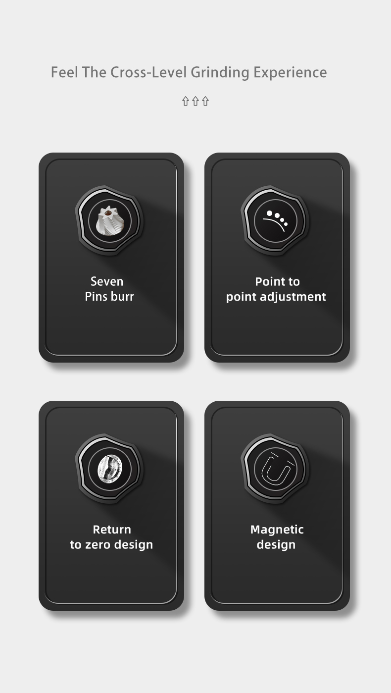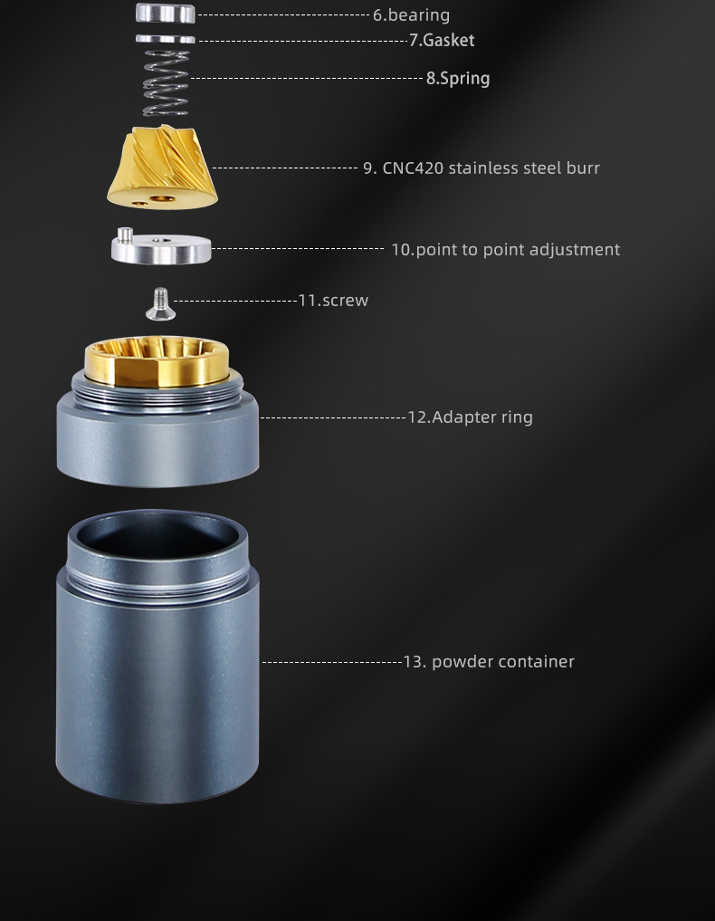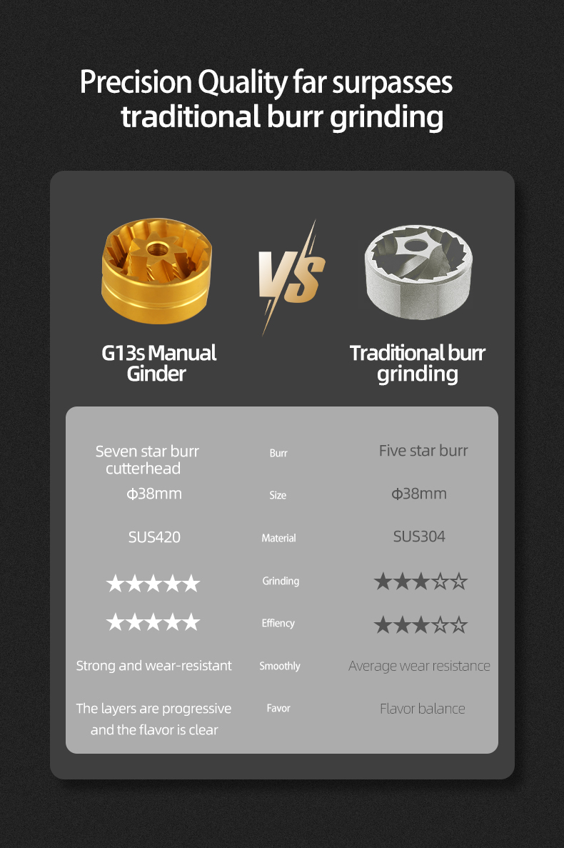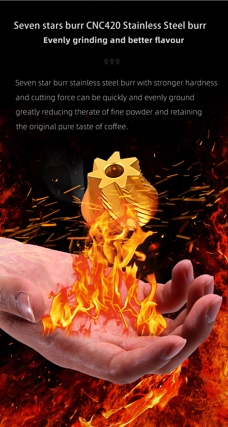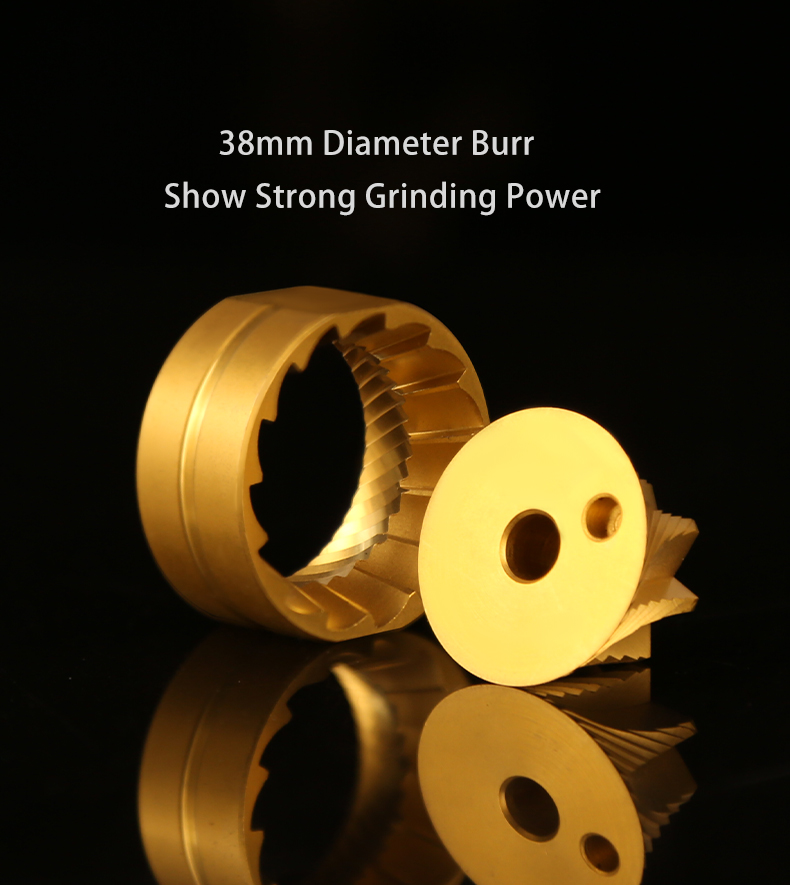 CNC Precision Machining: High-accuracy CNC-milled stainless steel burrs ensure uniform particle size for consistent extraction and rich flavor profiles.