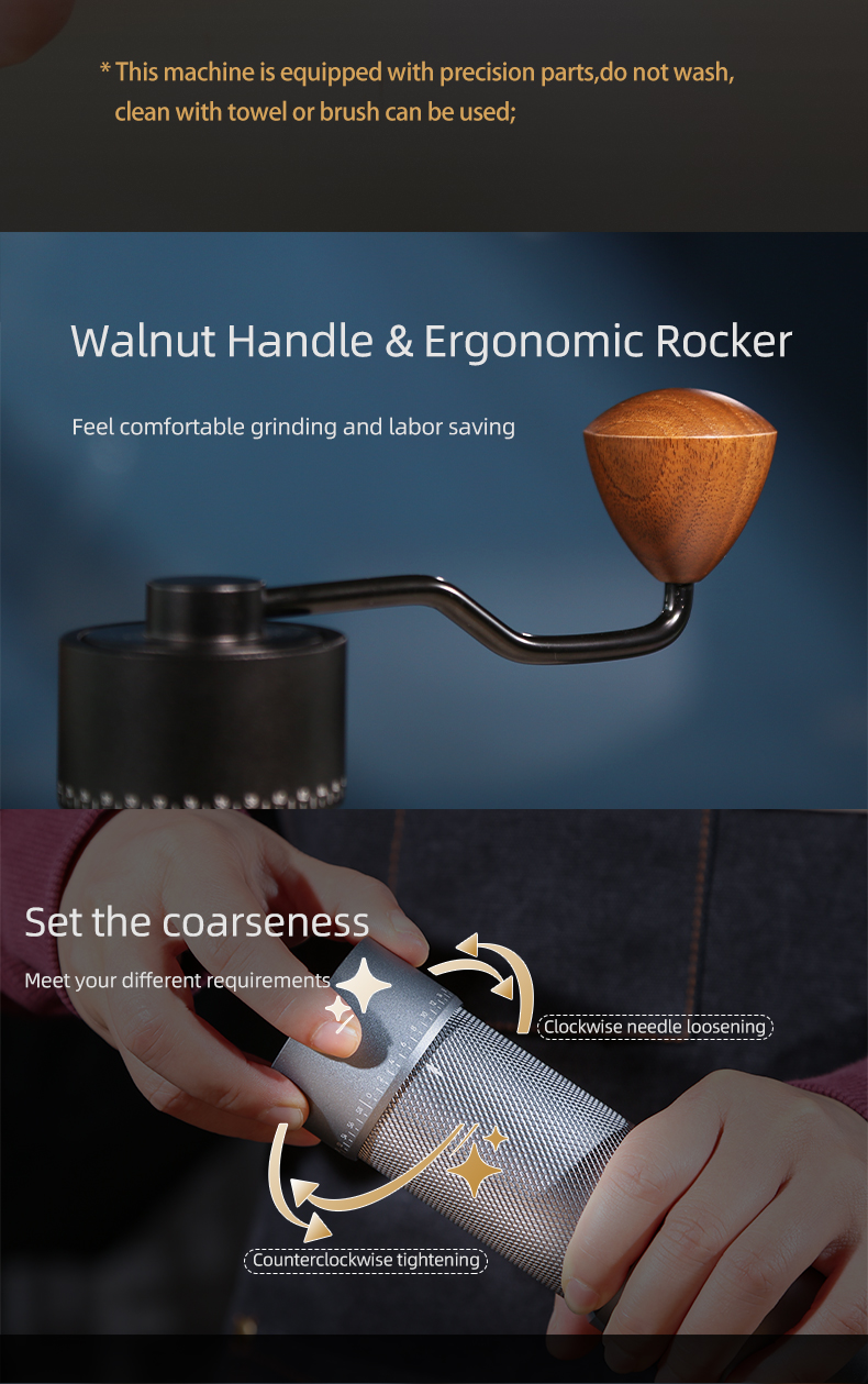 Commercial-Grade Durability: Heavy-duty aluminum alloy body with anti-corrosion coating, built to withstand high-volume grinding in cafes, roasteries, or home setups.