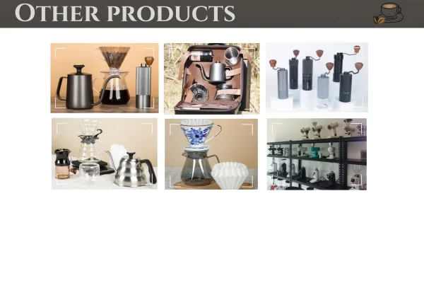 accessories, especially the ice coffee brewers, coffee drippers, coffee grinders, french press and coffee tampers, etc. Supported